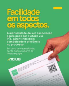Mais facilidade para o associado: mensalidade da Aciub agora pode ser paga via Pix