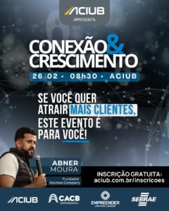 A Associação Empresarial de Uberlândia – Aciub promove, no próximo dia 26 de fevereiro, às 8h30, na sede da entidade, o evento ‘Conexão & Crescimento’,