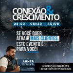 A Associação Empresarial de Uberlândia – Aciub promove, no próximo dia 26 de fevereiro, às 8h30, na sede da entidade, o evento ‘Conexão & Crescimento’, iniciativa voltada a empresários, gestores e profissionais que buscam estratégias práticas para ampliar a base de clientes e impulsionar resultados.