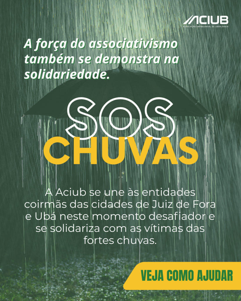 A Aciub, Associação Empresarial de Uberlândia, manifesta sua solidariedade às cidades de Ubá e Juiz de Fora diante das fortes chuvas que impactaram a população e o setor produtivo local.