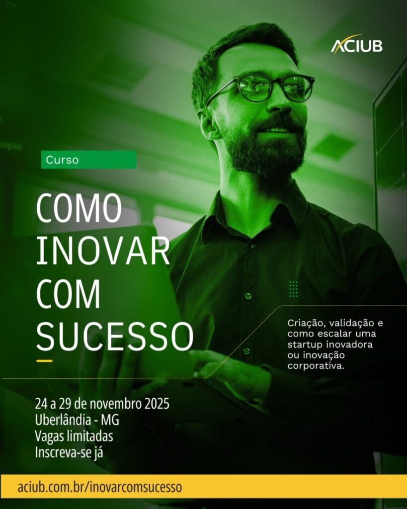 A Aciub lançou, durante o Collab Inovação 2025, o curso “Como Inovar com Sucesso – Criação, Validação e Escala de Startups Inovadoras ou Inovação Corporativa”, uma formação transformadora voltada a quem deseja construir ou impulsionar negócios inovadores. As inscrições estão abertas e as vagas são limitadas. Aproveite condições especiais para pagamento parcelado e 30% de […]