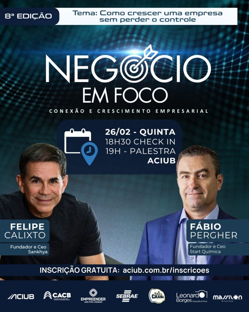 A Associação Empresarial de Uberlândia – Aciub realiza, no dia 26 de fevereiro, quinta-feira, a primeira edição de 2026 do Negócio em Foco, evento voltado à conexão, troca de experiências e fortalecimento do empresariado regional. O encontro acontece na sede da Aciub, com check-in às 18h30 e palestra às 19h, e terá como tema “Como […]
