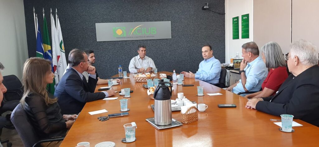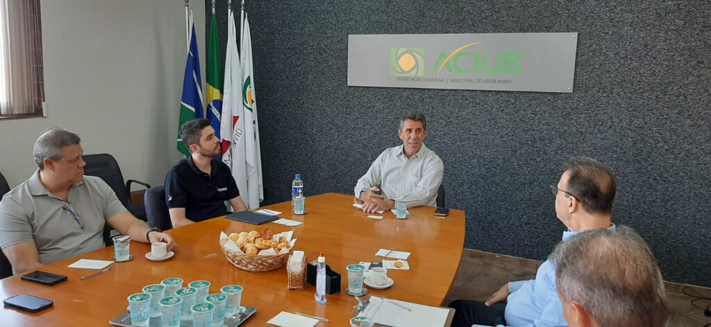 A diretoria da Associação Comercial e Industrial de Uberlândia – Aciub recebeu na manhã desta quinta-feira (28), o presidente do Banco de Desenvolvimento de Minas Gerais – BDMG, Gabriel Viégas Neto, e o gerente de relacionamento para micro e pequenas empresas, Matheus Foureaux, para um diálogo sobre oportunidades de crédito, investimentos e fortalecimento do setor produtivo, que já resultou na preparação de uma agenda para anúncio de parceria com foco em oferecer linhas de crédito para os associados.