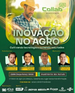 No próximo dia 23 de setembro, às 18h30, a sede da Associação Comercial e Industrial de Uberlândia (Aciub) será palco do evento ‘Inovação no Agro