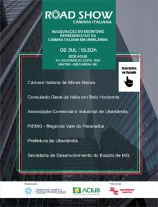 A Câmara de Comércio Italiana de Minas Gerais e a Associação Comercial e Industrial de Uberlândia (ACIUB) promovem no dia 08/07 (segunda) o Road Show
