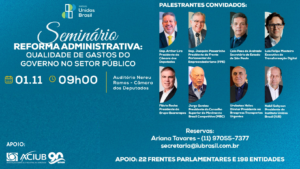 O Instituto Unidos Brasil irá realizar na próxima quarta-feira, 01 de novembro, o seminário “Reforma Administrativa: qualidade de gastos do governo no setor público”. O