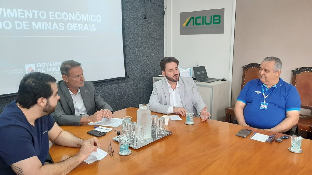 A Associação Empresarial de Uberlândia – Aciub recebeu nesta quarta-feira (11) o Secretário Executivo de Desenvolvimento Econômico do Estado de Minas Gerais, Bruno Araújo, para participar do evento Conexão Associativista, iniciativa é do Governo de Minas, por meio da Secretaria de Desenvolvimento Econômico, em parceria com a Federaminas, com o propósito de ouvir os empresários e promover conexões que gerem impacto real para a nossa região. A reunião, presidida pelo vice-presidente da aciub, Sérgio Tannús, reuniu diretores da entidade, representantes da Prefeitura de Uberlândia, Sebrae Minas, além de empresários associados.